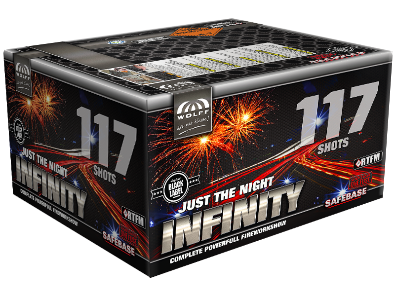 Infinity nDeze topper verdient een podium! Ongekend avondvullende vuurwerkshow met 117 shots. Spanning en sensatie gegarandeerd! n nKruitgewicht 1360 Gram nTube diameter 20 / 25 / 30 nBrandtijd 75 Seconden nHoogte 30 m. – 35 m. Infinity Goedkoop vuurwerk kopen bij Vuurwerkwinkel Almelo