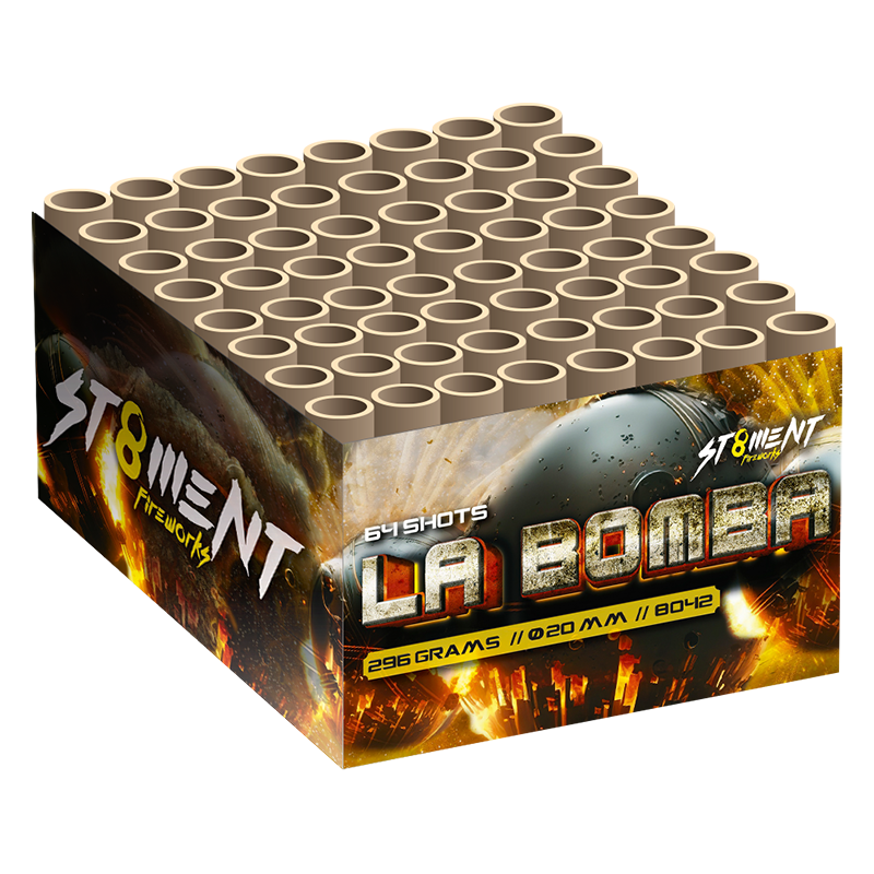 La Bomba! Knallend en fluitend het nieuwe jaar in? Dan is deze La Bomba-cake jouw perfecte keuze! Gebaseerd op de oude Estallar van St8ment schiet deze cake 64 schoten in heftige salvos van siervuurwerk en fluit in een hoog tempo de hemel in! Topper van de bovenste plank!