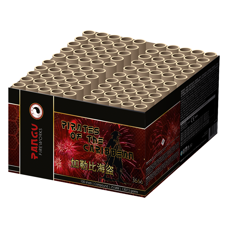 Pirates of the Caribbean 100 shots 25mm Goedkoop vuurwerk kopen bij Vuurwerkwinkel Almelo